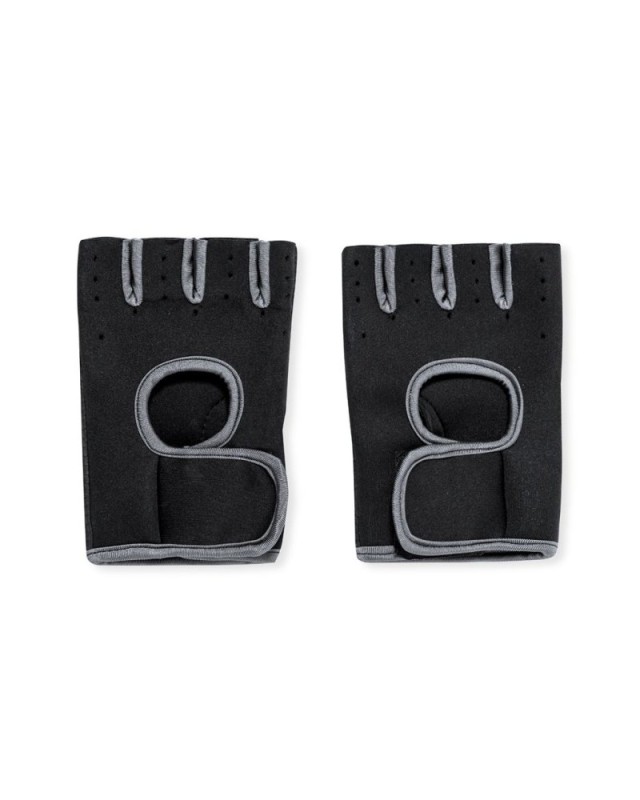Guanti sportivi in morbido poliestere e lycra neoprene, la cui combinazione crea una seconda pelle che si adatta alla mano, con chiusura del polso in velcro. Questi guanti sono comodi per qualsiasi disciplina grazie alla loro elevata traspirabilità, ottenuta grazie al design delle dita ad aria e ai dissipatori di calore sulla parte superiore, che presentano anche una finitura ruvida per una presa ottimale. Disponibili in nero con cuciture grigie, nelle taglie S-M e L-XL. Presentati in un sacchetto riciclato. - Peso: 70 gr