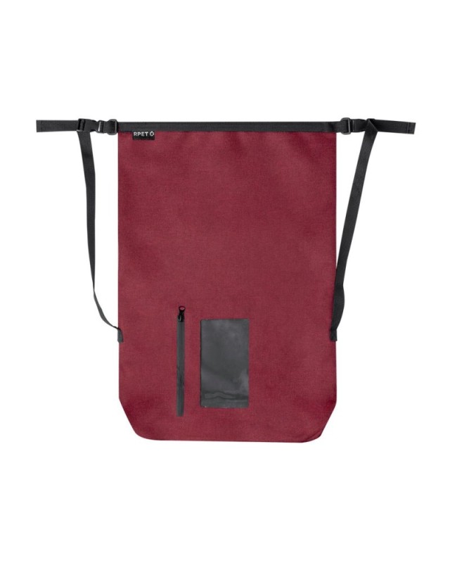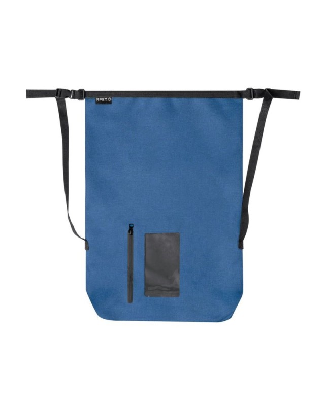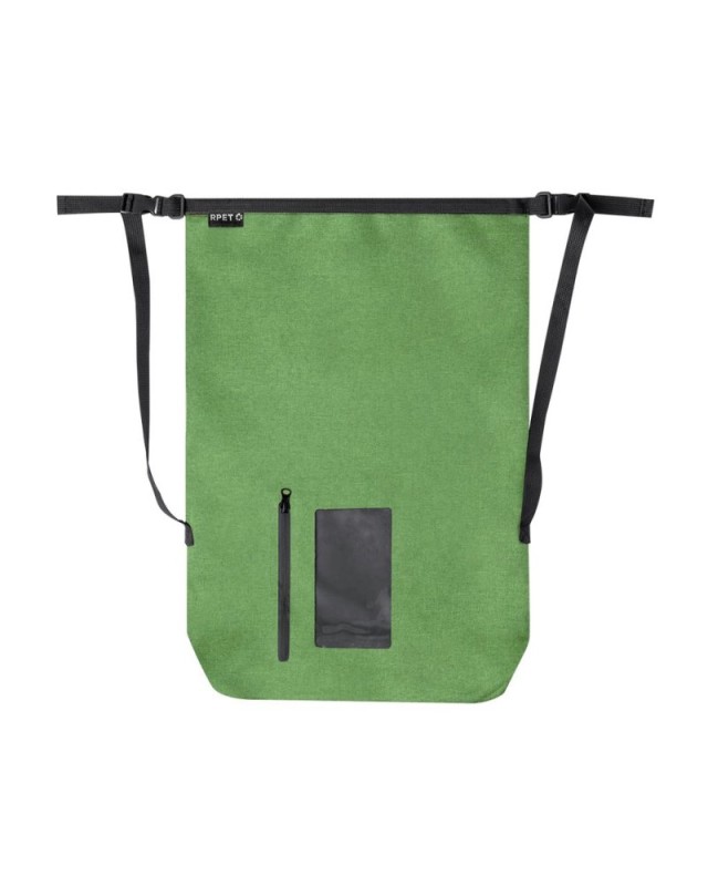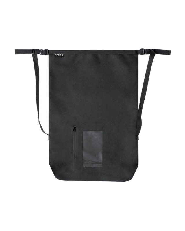 Zaino impermeabile di grande capacità (25L), realizzato in resistente 300D RPET. Con chiusura di sicurezza, manico con fibbia di regolazione, moschettone e cinghie regolabili. Include anche una finestra frontale in PVC trasparente. Con etichetta RPET sulla chiusura. Disponibile in unampia gamma di colori e presentata in una borsa individuale riciclata. Il materiale RPET è realizzato con plastica riciclata, promuovendo così il riutilizzo dei rifiuti plastici e contribuendo alla sostenibilità del pianeta. - Lunghezza: 37 cm - Larghezza: 13 cm - Peso: 360 gr
