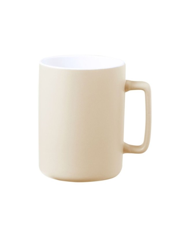 Tazza in ceramica con capacità di 420 ml. Design raffinato con manico quadrato in combinazione con linterno bianco e lesterno in unampia gamma di colori opachi. Presentata in scatola individuale con finitura kraft. - Diametro: 8.2 cm - Peso: 375 gr