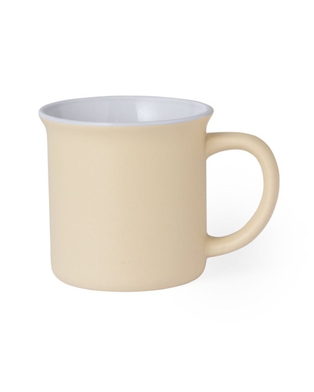 Tazza in ceramica con capacità di 300 ml. Caratteristico design vintage con combinazione di interno bianco ed esterno in unampia gamma di colori opachi. Presentata in scatola individuale con finitura kraft. - Diametro: 8.6 cm - Peso: 275 gr