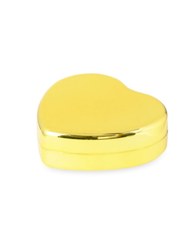 Balsamo labbra in eleganti colori oro, argento e oro rosa a forma di cuore. Profumo di vaniglia, protezione SPF15 e dermatologicamente testato. Con tappo a scatto e finitura lucida. - Lunghezza: 5 cm - Larghezza: 5 cm - Peso: 20 gr