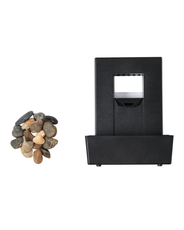 Fontana dacqua a sfioro portatile con luci LED. Cascata dacqua su pietre naturali, ideale per la decorazione o per i momenti di relax. Include un serbatoio dacqua e una struttura illuminata da LED in tonalità naturale, attraverso la quale scorre lacqua. Alimentata da 3 batterie AA (non incluse). Presentata in una scatola kraft di design. - Lunghezza: 11.3 cm - Larghezza: 8.5 cm - Peso: 225 gr