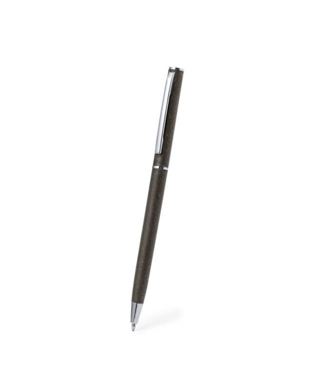 Penna con fusto in fibra di caffè. Clip in metallo e finiture cromate. Meccanismo a rotazione e inchiostro blu. Con logo della fibra di caffè e disponibile in colore naturale.La fibra di caffè è una soluzione circolare ottenuta dallutilizzo degli scarti prodotti nella produzione del caffè. Unalternativa sostenibile che favorisce la riduzione delluso della plastica, risparmiando energia nel suo processo di produzione e contribuendo alla cura dellambiente. - Diametro: 0.8 cm - Peso: 5 gr
