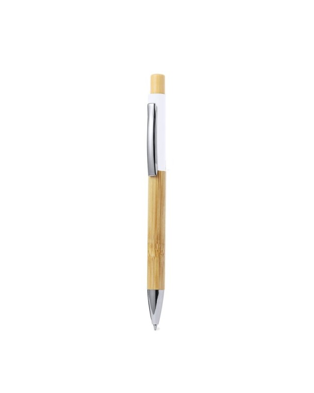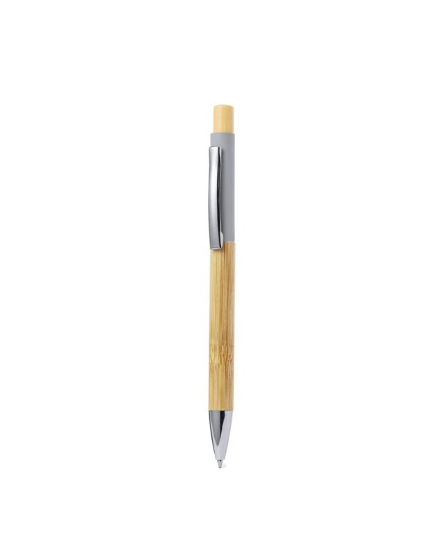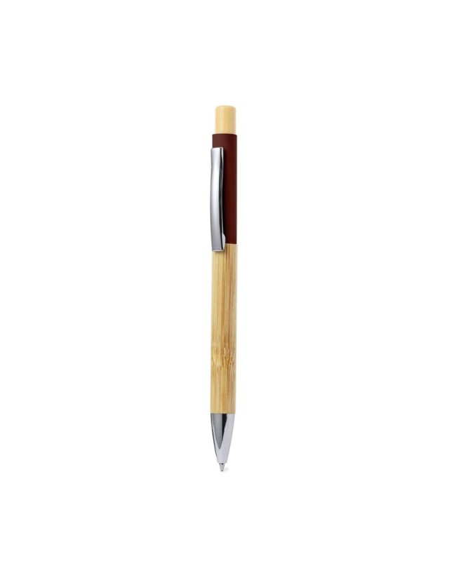 Elegante penna in bambù. Fusto in alluminio resistente con finitura gommata e impugnatura in bambù, con fusto in vari colori caratteristici. Presentata in un sacchetto individuale riciclato.Materiali come il bambù favoriscono lutilizzo di materie prime naturali, riducendo le emissioni inquinanti. Proviene da una pianta altamente resistente e versatile, con una rapida crescita e rigenerazione, rappresentando unottima alternativa alluso del legno tradizionale. - Diametro: 1 cm - Peso: 14 gr