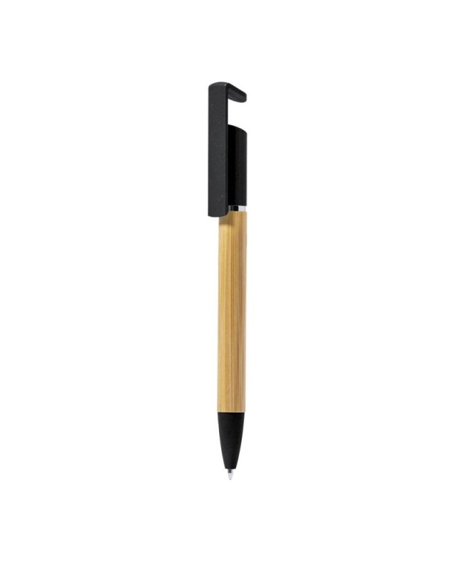 Pratico portapenne in bambù e fibra di grano. Corpo in bambù, con accessori in fibra di grano colorata ed elementi decorativi in metallo. Meccanismo a scatto, con supporto integrato per la clip del dispositivo mobile. Inchiostro blu, con refill jumbo e disponibile in diversi colori.Materiali come il bambù promuovono luso di materie prime naturali e riducono le emissioni inquinanti. Inoltre, il bambù proviene da una pianta altamente resistente e versatile, con una rapida crescita e rigenerazione, che lo rende unottima alternativa al legno tradizionale. - Diametro: 1.1 cm - Peso: 9.5 gr