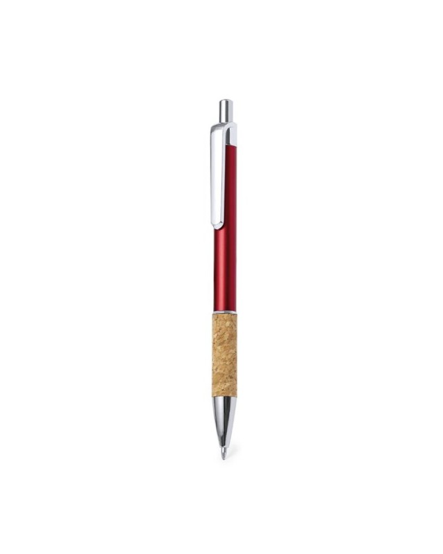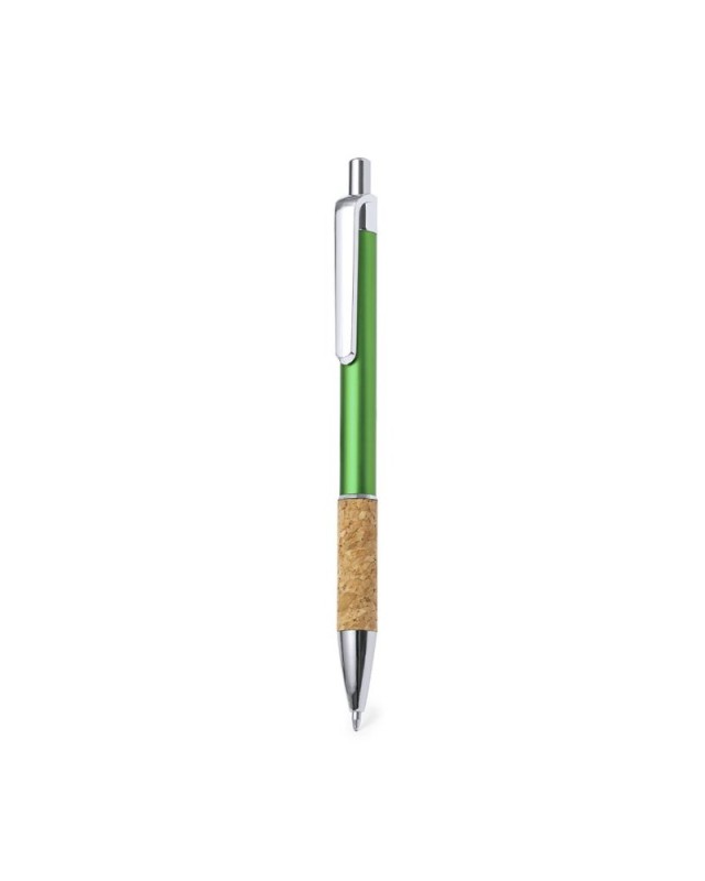 Elegante penna in sughero e alluminio con meccanismo a pulsante. Robusto fusto in alluminio con finitura lucida e impugnatura in sughero, con il fusto disponibile in vari colori. Clip in metallo e inchiostro blu. Presentate in un sacchetto individuale riciclato.Realizzata con elementi di origine vegetale per favorire luso di materie prime naturali e ridurre le emissioni inquinanti. - Diametro: 1 cm - Peso: 11 gr