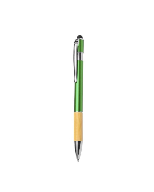 Elegante penna touch in bambù e alluminio con meccanismo a pulsante. Robusto fusto in alluminio con finitura lucida e impugnatura in bambù con puntatore touch superiore nero. Fusto in unampia gamma di colori metallici esclusivi. Clip a pulsante metallica e retrattile con inchiostro blu. Presentata in un astuccio individuale riciclato.Materiali come il bambù favoriscono luso di materie prime naturali, riducendo le emissioni inquinanti. Proviene da una pianta altamente resistente e versatile, con una crescita e una rigenerazione rapida, che lo rende unottima alternativa alluso del legno tradizionale. - Diametro: 1 cm - Peso: 15 gr