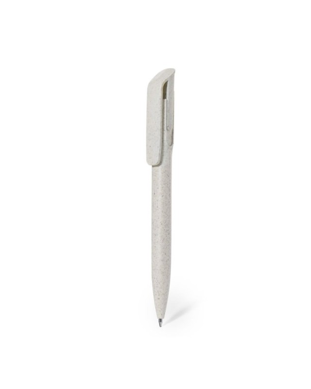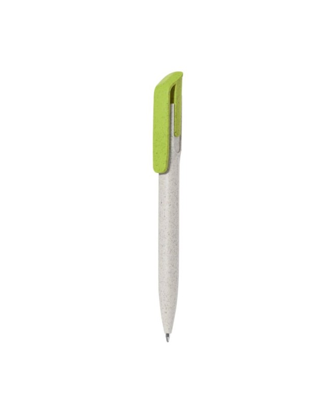 Pratica penna in fibra di grano. Meccanismo a pulsante, inchiostro blu e logo Wheat Straw sulla parte superiore della penna. Con clip in vari colori e fusto naturale. La fibra di grano promuove luso di materie prime naturali, riducendo così le emissioni inquinanti. - Lunghezza: 1.2 cm - Larghezza: 1 cm - Peso: 12 gr
