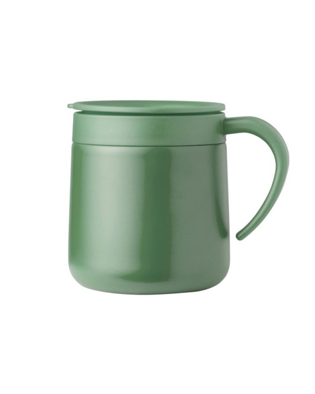 Tazza termica da tavolo in acciaio inox a doppia parete con isolamento e capacità di 330 ml. Include un coperchio a scatto con dispenser ad apertura facilitata e base antiscivolo. Disponibile in unampia gamma di colori opachi. Confezionata singolarmente in unattraente scatola dal design kraft. - Diametro: 9.6 cm - Peso: 210 gr