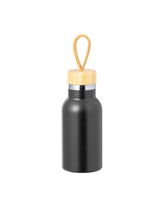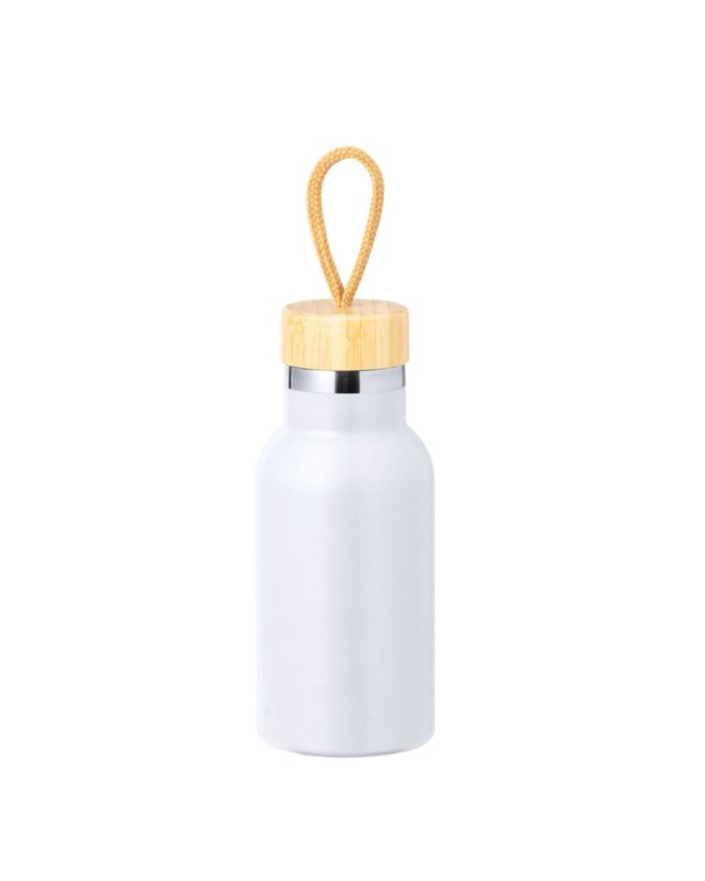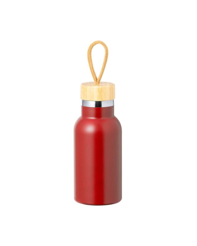 Borraccia termica da 350 ml, realizzata in acciaio inox a doppia parete. Include loriginale tappo a vite in bambù e la maniglia per il trasporto in colore naturale. Disponibile in unampia gamma di colori e presentata in una scatola kraft individuale. - Diametro: 7.3 cm - Peso: 240 gr