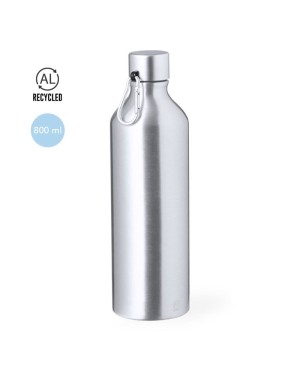 Borraccia in Alluminio Riciclato con capacità di 800 ml. Finitura opaca, tappo a vite con moschettone in metallo per un facile trasporto e BPA free. Disponibile in eleganti colori lucidi. Presentata in una scatola di design kraft individuale. LAlluminio Riciclato è un materiale con possibilità di riciclaggio quasi infinite, senza perdere le sue proprietà originali e consumando meno energia nel processo.Certificazione GRS (Global Recycled Standard), che garantisce lorigine riciclata del materiale utilizzato per la fabbricazione del prodotto - Diametro: 7.2 cm - Peso: 105 gr