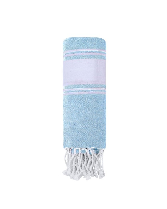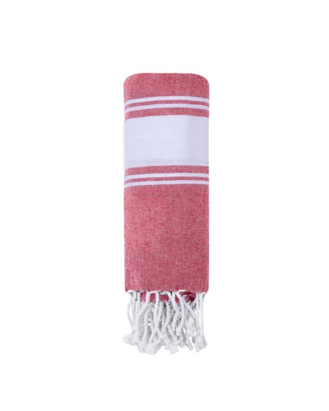 Morbido pareo asciugamano in cotone riciclato al 100% da 180 g/m2. Disponibile in unampia gamma di colori in bicolore. Logo sulletichetta laterale. Presentato singolarmente in una borsa. - Lunghezza: 180 cm - Peso: 335 gr