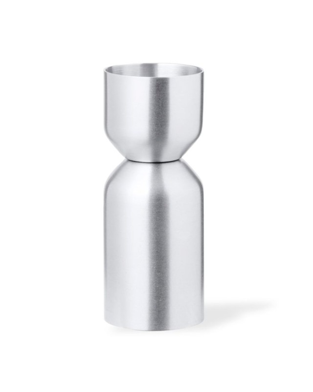 Bicchiere dosatore per bevande in acciaio inox con finitura opaca. Appositamente progettato per la stampa laser e presentato in una scatola kraft di design. - Diametro: 3.5 cm - Peso: 60 gr