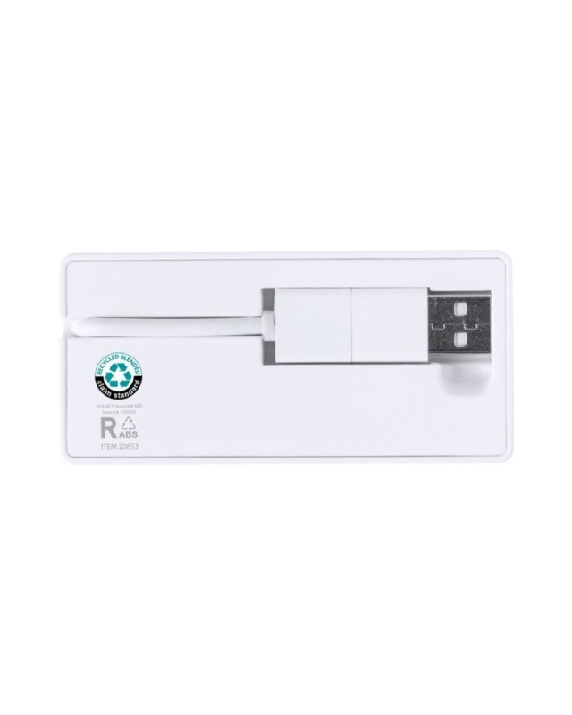 Porta USB 2.0 realizzata in resistente RABS con finitura bianca. Include una porta Type-C e 2 porte USB, con doppio ingresso USB/Type-C. Design compatto con slot sul retro del dispositivo per riporre i cavi. Confezionato singolarmente con design kraft.Il RABS è una plastica altamente riciclabile e resistente, con una moltitudine di applicazioni che la rendono una soluzione ecologica. Con certificazione RCS, che ne garantisce lorigine riciclata. - Lunghezza: 8.4 cm - Larghezza: 4.1 cm - Peso: 30 gr