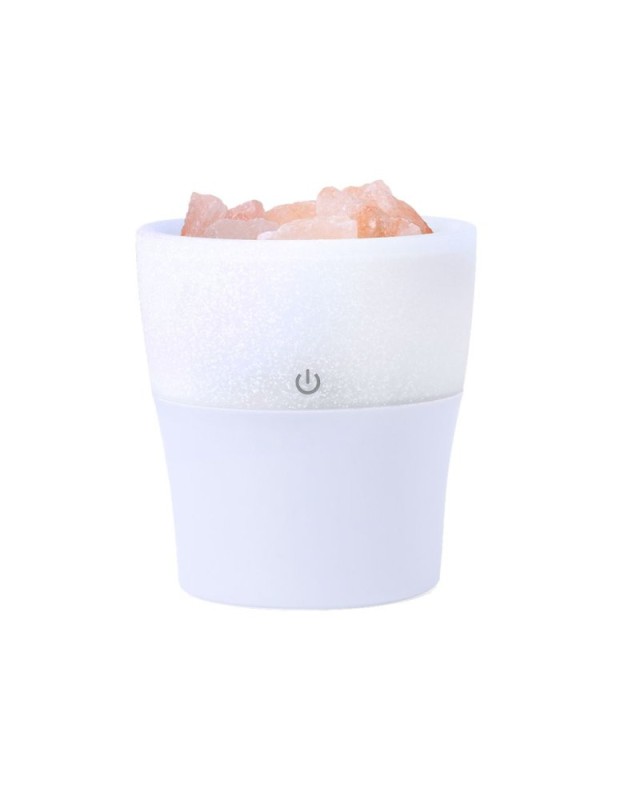 Elegante e decorativo umidificatore, con diffusore aromatico integrato con sale dellHimalaya. Con luce LED multicolore e vaporizzazione continua. Serbatoio da 150 ml, utilizzabile in ambienti fino a 25 m2, e cavo di alimentazione USB. Include 10 ml di aroma di lavanda. Presentato in una scatola kraft di design. - Diametro: 9 cm - Peso: 240 gr