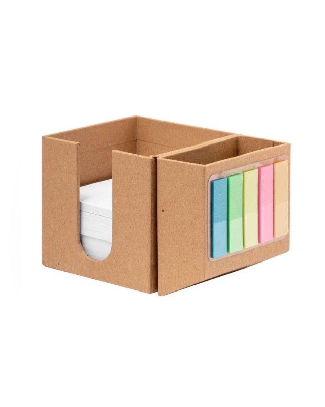 Portanotes in cartone riciclato. Pratico cubo pieghevole con 320 fogli da 7,5x7,5 cm e 125 mini post-it adesivi da 1,5x5 cm in diversi colori, con un pratico foro da utilizzare come portamatite. Il cartone riciclato proviene dal riutilizzo di eccedenze di produzione e dal riciclo della carta al termine della sua vita utile, rendendolo una tela ecologica e sostenibile. - Lunghezza: 8 cm - Larghezza: 8 cm - Peso: 225 gr