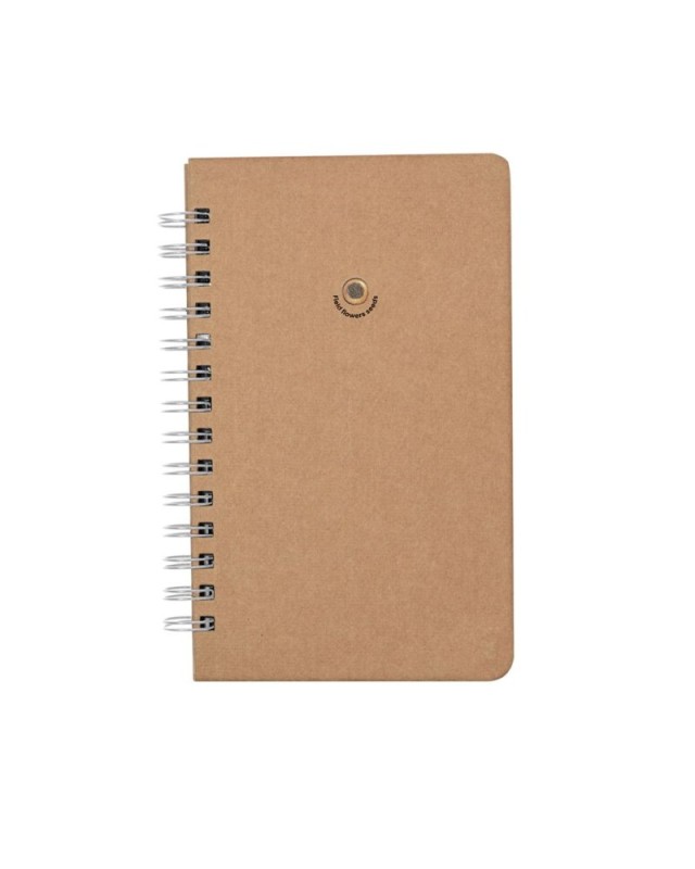 Taccuino con semi, ad anelli e con copertina rigida, realizzato in robusto cartone riciclato. Comprende 80 pagine interne, con impaginazione a righe singole su carta riciclata. Inoltre, la copertina anteriore contiene una capsula di semi di fiori selvatici, in colori assortiti e con istruzioni per la semina sul retro della copertina.Il cartone riciclato proviene dal riutilizzo delle eccedenze di produzione e dal riciclo della carta alla fine della sua vita utile, rendendolo una tela ecologica e sostenibile. - Lunghezza: 14.3 cm - Larghezza: 21 cm - Peso: 300 gr