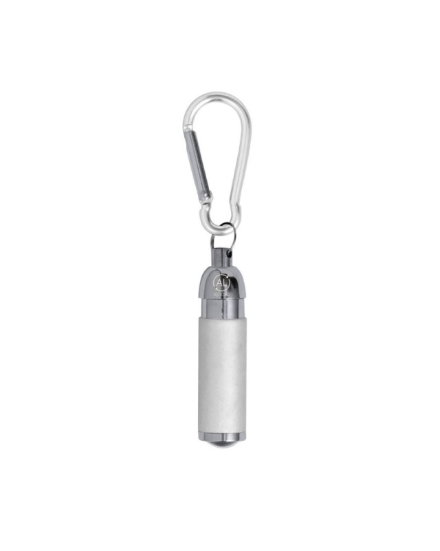 Torcia portachiavi con corpo in Alluminio Riciclato. Dotato di 1 LED di potenza, funziona con batterie a bottone incluse e ha un gancio a moschettone dello stesso colore. Logo Alluminio Riciclato sul lato e disponibile in una vasta gamma di colori. Presentato in una scatola kraft di design.LAlluminio Riciclato è un materiale con possibilità di riciclaggio quasi infinite, ma senza perdere le sue proprietà originali e consumando meno energia nel processo.La certificazione GRS (Global Recycled Standard) garantisce lorigine riciclata del materiale utilizzato per la fabbricazione del prodotto - Diametro: 1.6 cm - Peso: 10 gr
