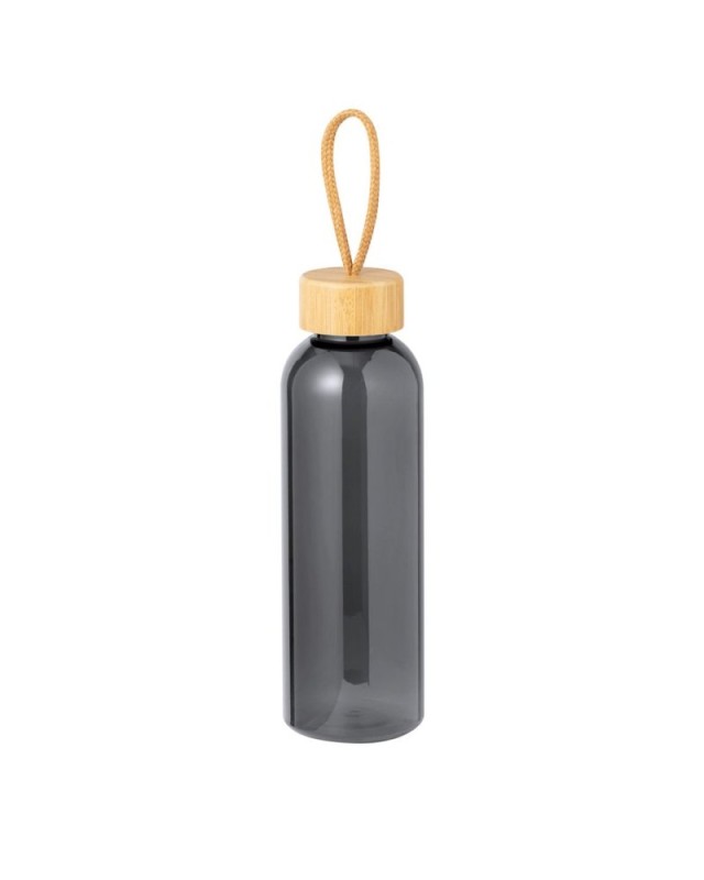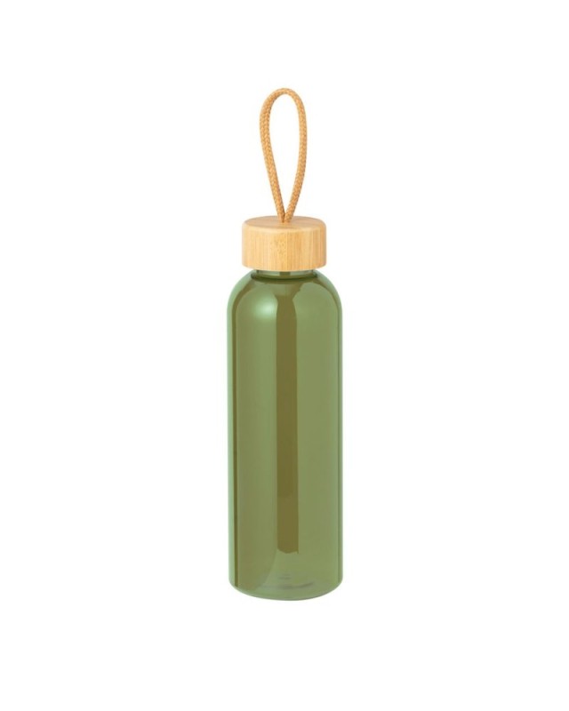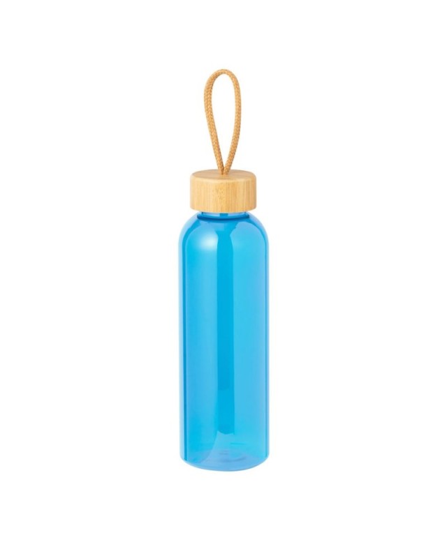 Borraccia in RPET da 650 ml, BPA Free. Tappo a vite in bambù, con cordino intrecciato. Disponibile in unampia gamma di colori. Presentata singolarmente in una sacchetto di carta. - Diametro: 7 cm - Peso: 87 gr