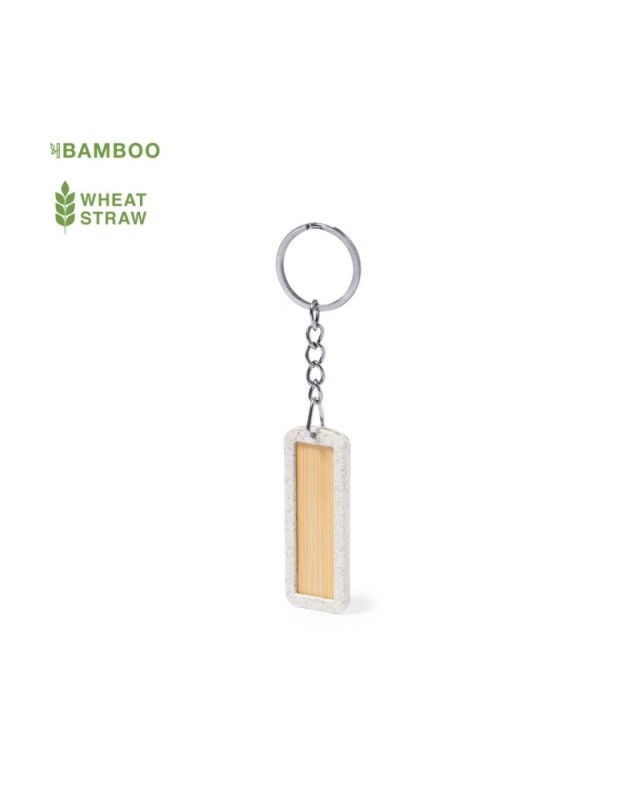 Portachiavi ecologico realizzato in bambù con struttura in fibra di grano. Di forma rettangolare e con unampia area di marcatura. La fibra di grano favorisce lutilizzo di materie prime naturali, riducendo così le emissioni inquinanti. - Lunghezza: 2 cm - Larghezza: 0.4 cm - Peso: 5.7 gr