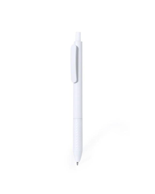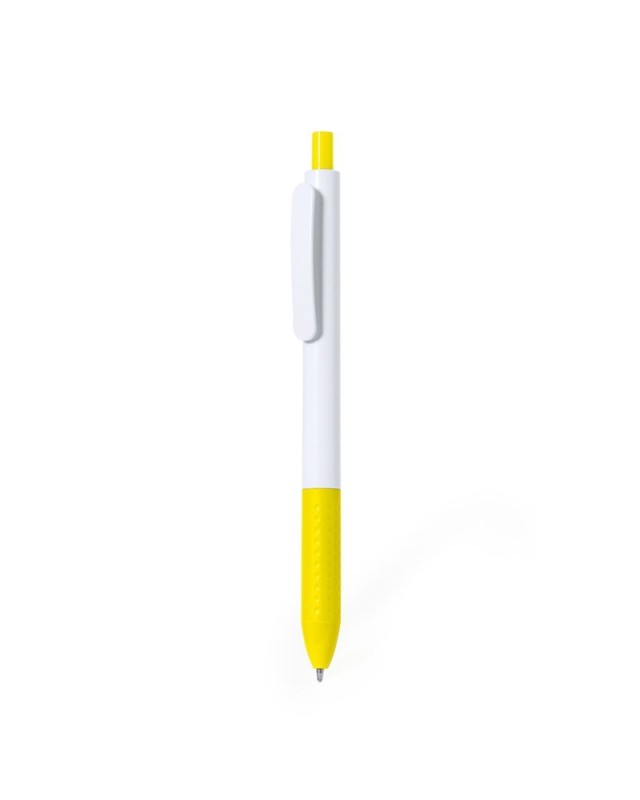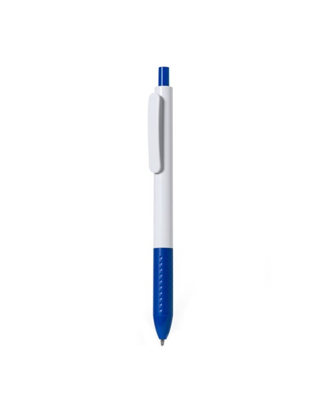 Penna con meccanismo a pulsante in robusto ABS. Realizzata in unelegante combinazione di fusto e clip di colore bianco. Con pulsante e impugnatura disponibili in una vivace varietà di colori. Inchiostro blu. - Diametro: 1 cm - Peso: 7 gr