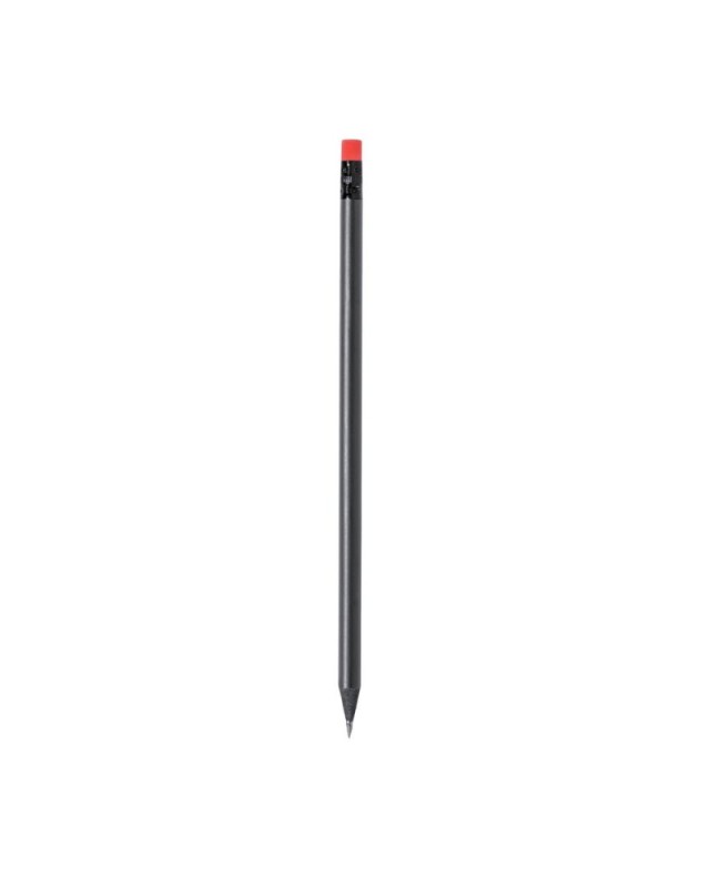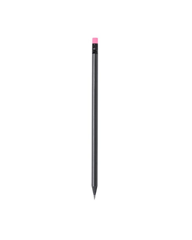 Elegante matita nera in legno naturale, con pratica gomma e disponibile in vari colori. Con mina nera e punta affilata. - Diametro: 0.7 cm - Peso: 5.6 gr