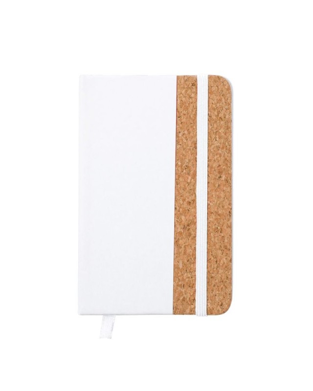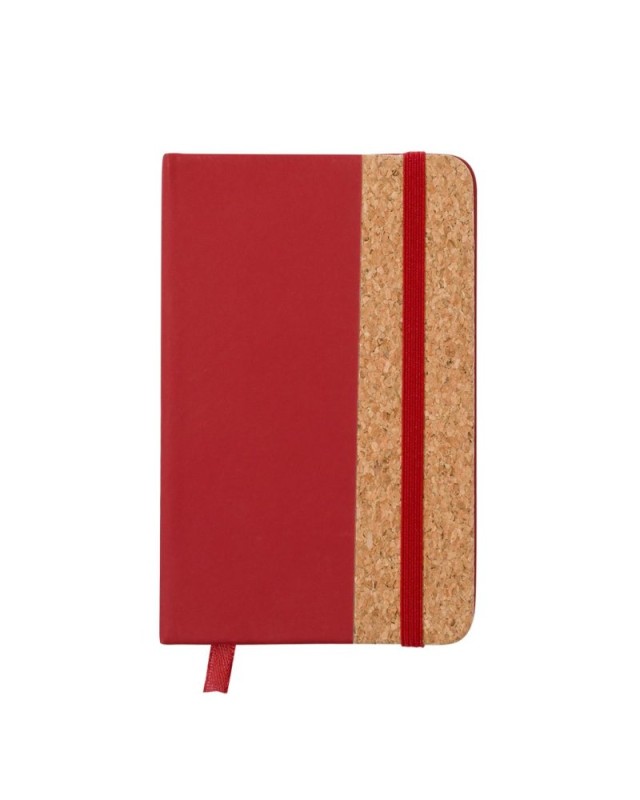 Block notes con copertina rigida lavorata con pregiato sughero. Include 80 fogli lisci con rilegatura elastica e segnalibro in tessuto abbinato. Disponibile in unampia gamma di colori, con esterno in sughero naturale e finta pelle. Presentato in un sacchetto individuale. Realizzato con elementi vegetali per promuovere luso di materie prime naturali e ridurre le emissioni inquinanti. - Lunghezza: 8.8 cm - Larghezza: 1.5 cm - Peso: 110 gr