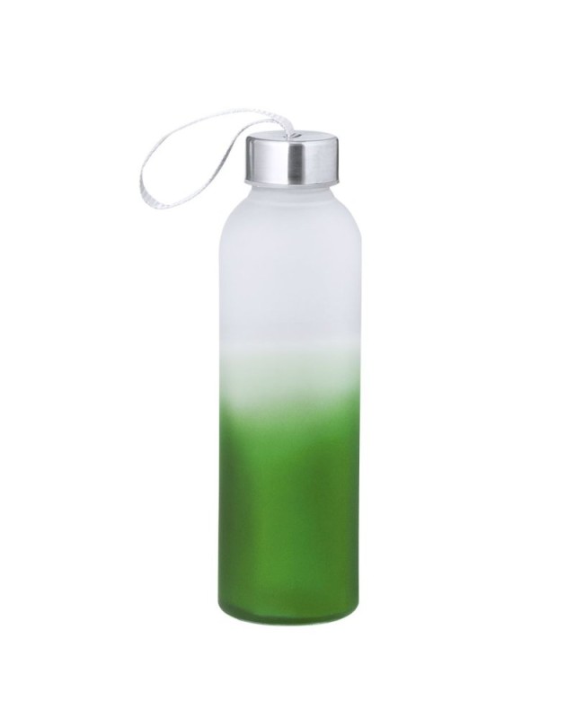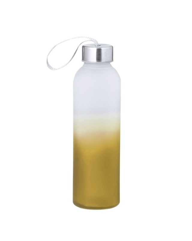 Borraccia in vetro e acciaio inox con capacità di 500 ml. Originale design a sfumature dal bianco semitrasparente a vari colori opachi. Tappo a vite con perfetta tenuta e cinghia per un facile trasporto. Confezionata singolarmente in una scatola kraft di design. - Diametro: 6.3 cm - Peso: 250 gr