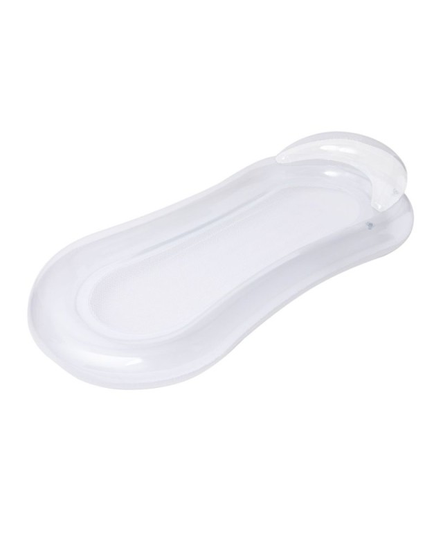 Materassino originale in resistente PVC. Include un comodo cuscino per la testa, dal design bicolore, nei colori trasparente e bianco. Include una resistente rete centrale in poliestere bianco. Con piegatura speciale per una facile stampa. Viene fornito sgonfio e in una pratica busta individuale riciclata. - Lunghezza: 72 cm - Larghezza: 25 cm - Peso: 600 gr