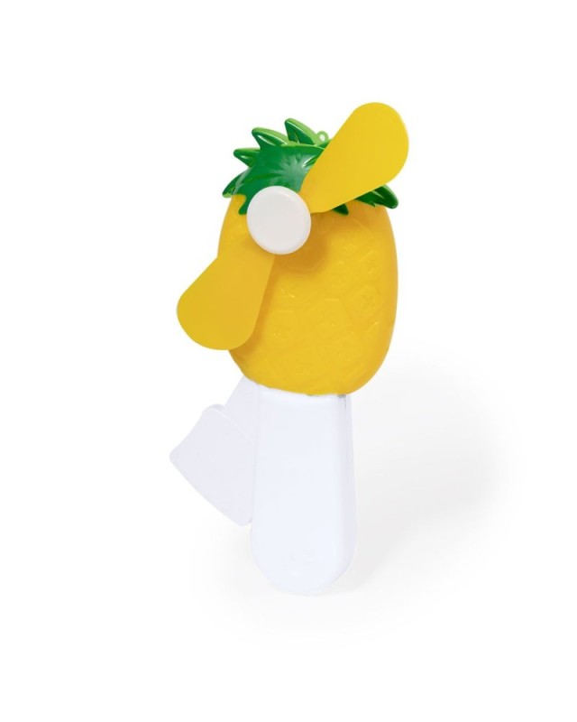 Ventilatore con divertenti forme di frutta, realizzato in robusto ABS. Si aziona manualmente premendo continuamente la leva integrata nellimpugnatura per muovere le pale. Disponibile nei modelli fragola, ananas, uva, anguria o arancia. Confezionato singolarmente in un sacchetto riciclato. - Lunghezza: 7 cm - Larghezza: 3.5 cm - Peso: 28 gr
