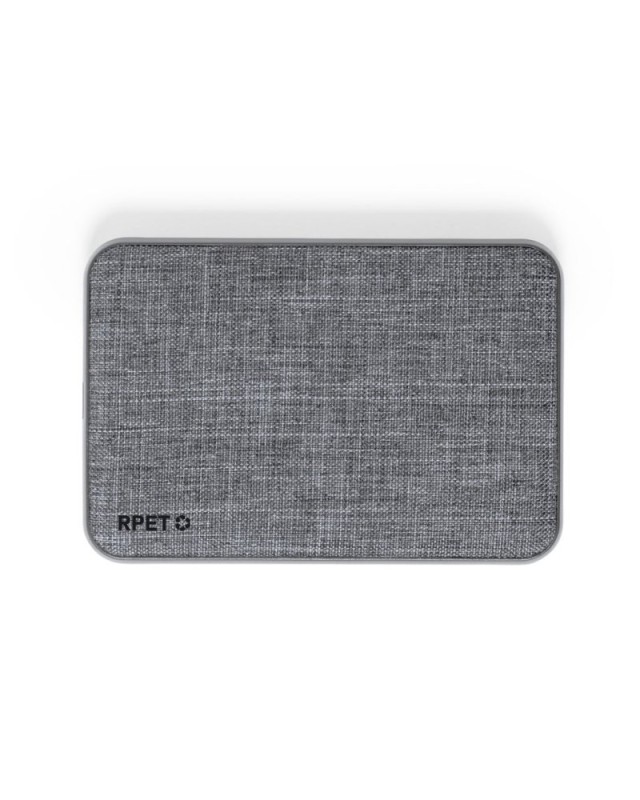 Batteria ausiliaria esterna rivestita in morbido poliestere RPET. Capacità di 5.000 mAh, con connessione di ingresso e uscita di tipo C + 2 uscite USB. Indicatore dello stato di carica e cavo di ricarica Micro USB inclusi. Con ampia superficie di stampa e logo RPET. Presentata in unattraente scatola dal design kraft. .Il materiale RPET è realizzato con plastica riciclata, in modo da incentivare il riutilizzo dei rifiuti plastici e aiutare la sostenibilità del pianeta.Le capacità indicate in tutte le nostre batterie ausiliarie esterne sono reali, tutte incorporano batterie di grado A e non riciclate, con una vita utile di almeno 500 cicli di carica e secondo le normative CE.Inoltre, sono prodotti in conformità agli standard RoHS e in conformità ai seguenti requisiti di sicurezza:Sistema di protezione da sovraccarico della power bank.Sistema completo di protezione dallo scarico che garantisce una maggiore durata del power bank.Sistema di bloccaggio per evitare cortocircuiti.Sistema di trasferimento di carica costante, in base alla capacità del dispositivo di destinazione. - Lunghezza: 6.7 cm - Larghezza: 1.4 cm - Peso: 114 gr