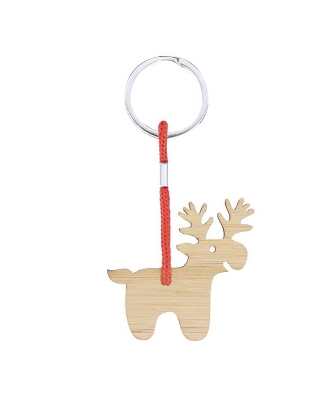 Portachiavi in bambù con motivi natalizi. Disponibile in quattro design originali: Renna, Cappello di Babbo Natale, Albero di Natale e Calza.Materiali come il bambù promuovono luso di materie prime naturali, riducendo così le emissioni di inquinanti. Proviene da una pianta altamente resistente e versatile, con rapida crescita e rigenerazione, rendendola unottima alternativa alluso del legno tradizionale. - Peso: 6 gr