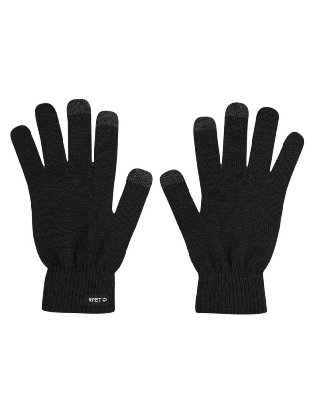 Guanti realizzati in tessuto di poliestere RPET caldo e morbido, per dispositivi touchscreen. Dotati di funzionalità touchscreen su dito medio, indice e pollice in colore coordinato. Con etichetta RPET.Il materiale RPET è realizzato in plastica riciclata, promuovendo così il riutilizzo dei rifiuti di plastica e contribuendo alla sostenibilità del pianeta. - Peso: 30 gr