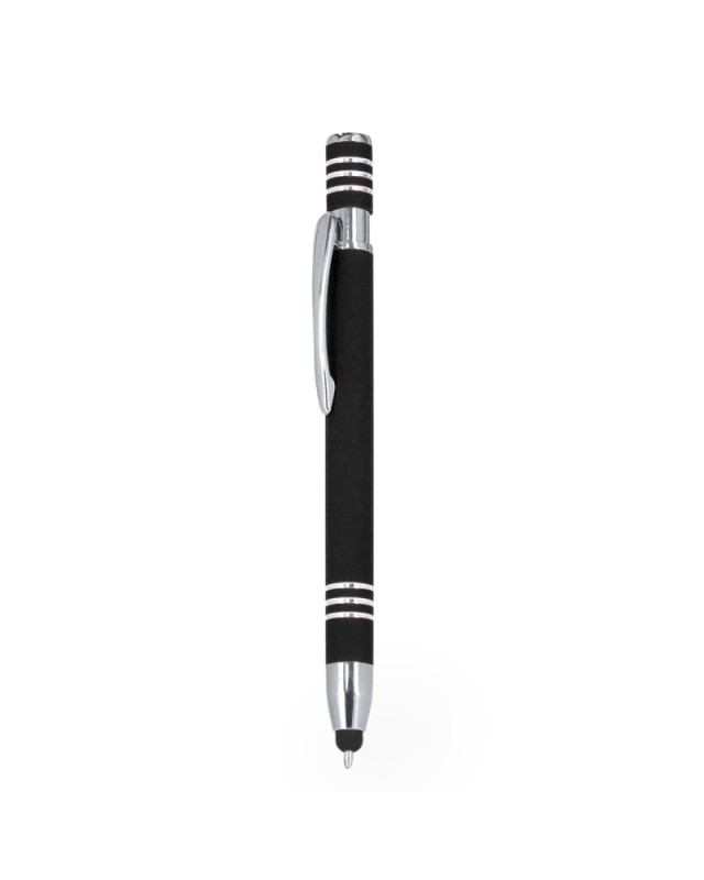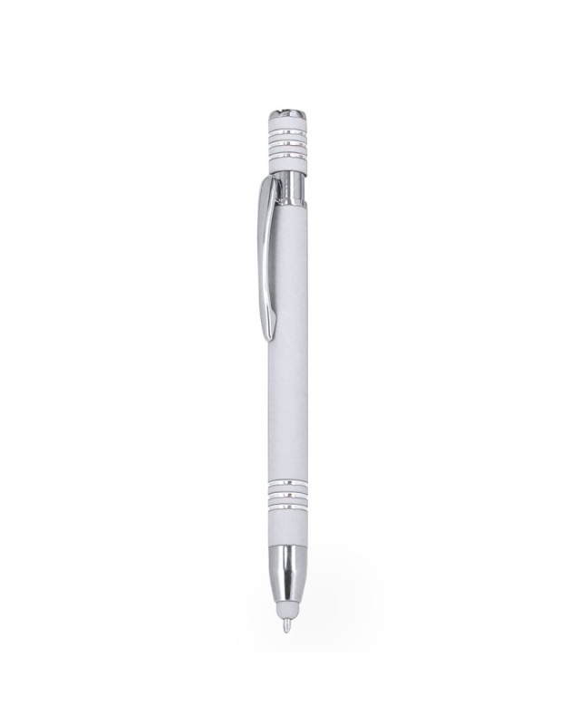 Penna a sfera con meccanismo a pulsante e stilo, realizzata in alluminio. Finitura gommata, appositamente progettata per la marcatura laser, rivelando il logo in tono argento. Accessori placcati in cromo e clip abbinato inclusi. Inchiostro blu. - Diametro: 1 cm - Peso: 18 gr