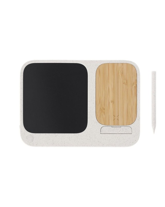 Caricatore wireless 15W con lavagna digitale integrata, realizzato in paglia di grano e bambù. Funzione supporto per smartphone, compatibile con dispositivi dotati di tecnologia di ricarica wireless Qi e indicatore di stato di carica. Dispone di una lavagna LCD da 6 pollici con stilo, pulsante di cancellazione e blocco anti-cancellazione.Materiali come il bambù promuovono luso di materie prime naturali, riducendo così le emissioni inquinanti. Proviene da una pianta altamente resistente e versatile, con crescita e rigenerazione rapide, rendendola uneccellente alternativa alluso del legno tradizionale.Prodotto secondo gli standard RoHS e in conformità con i seguenti requisiti di sicurezza:Sistema di protezione contro il surriscaldamento.Sistema di protezione contro il sovraccarico.Sistema di blocco per evitare cortocircuiti. - Lunghezza: 22 cm - Larghezza: 1 cm - Peso: 240 gr