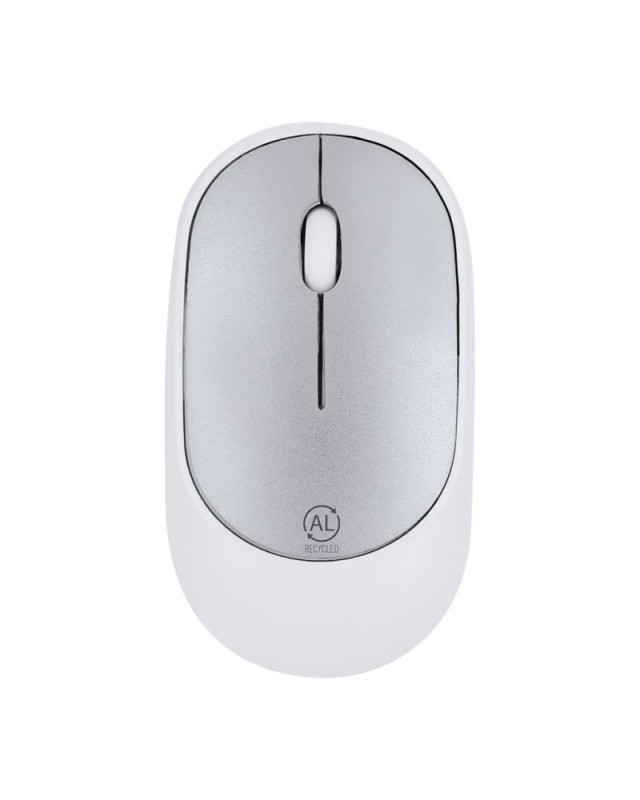 Mouse ottico wireless realizzato in RABS resistente (ABS riciclato), con piastra superiore in alluminio riciclato. Design ergonomico e connessione wireless (incluso connettore USB). Con logo in alluminio riciclato. Alimentazione a batteria (1xAA non inclusa).Il RABS è una plastica altamente riciclabile e resistente con molteplici applicazioni che lo rendono una soluzione ecologica. Certificazione RCS che garantisce la sua origine riciclata.Lalluminio riciclato è un materiale con possibilità di riciclo praticamente infinite, senza perdere le sue proprietà originali e consumando meno energia nel processo.Certificazione GRS (Global Recycled Standard) che garantisce lorigine riciclata del materiale utilizzato per la produzione del prodotto. - Lunghezza: 11 cm - Larghezza: 6 cm - Peso: 56 gr