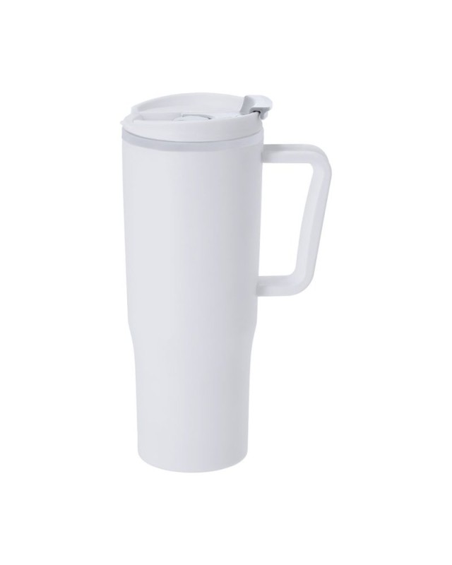Tazza isolante realizzata in PP riciclato a doppia parete resistente. Capacità di 800 ml. Coperchio con erogatore facile da aprire, incluso un foro per la cannuccia. Senza BPA. Include un manico ergonomico. Con logo in PP riciclato.Il PP riciclato è una plastica riciclata e altamente riciclabile, molto resistente e adatta a molteplici applicazioni.Certificato per uso alimentare, garantendo la sicurezza quando il cibo entra in contatto con il materiale utilizzato per produrre il prodotto. - Diametro: 14 cm - Peso: 260 gr