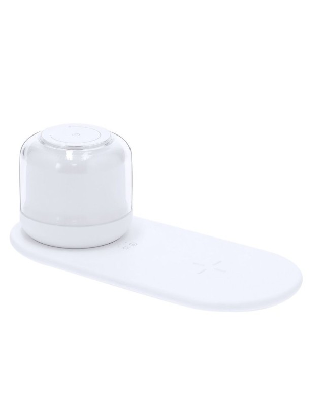 Lampada multifunzionale. Include:- Lampada portatile wireless con 12 LED. Inoltre, ha 2 posizioni della luce regolabili tramite pulsanti touch: una posizione in luce bianca e unaltra in diversi colori.- Caricatore wireless da 15W. - Lunghezza: 21 cm - Larghezza: 9.5 cm - Peso: 260 gr