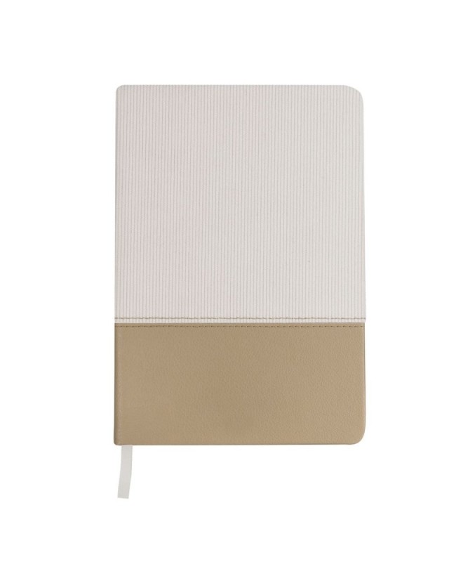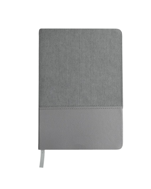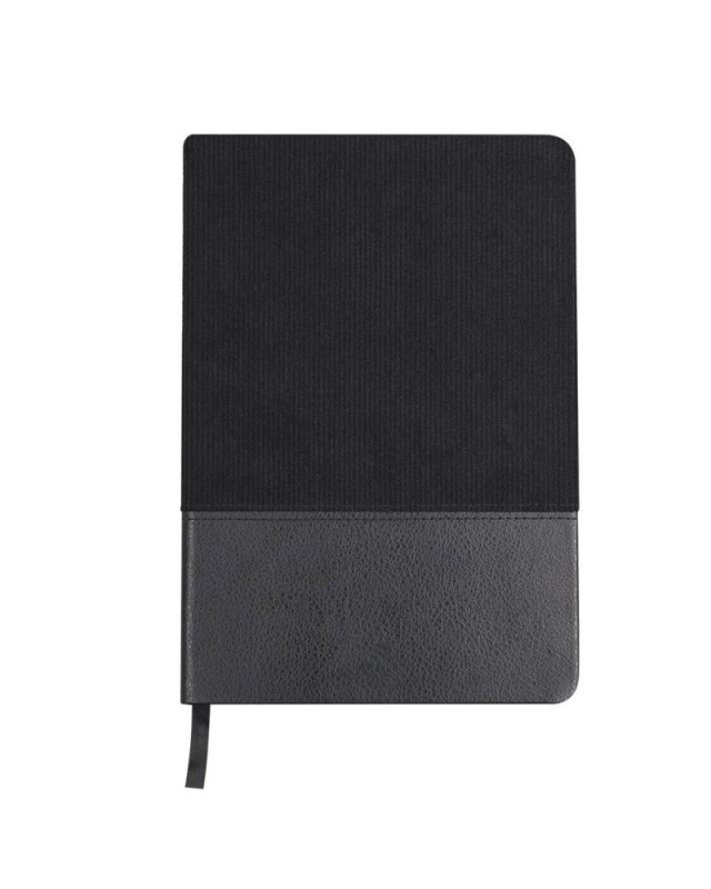 Taccuino A5 realizzato in morbido velluto a coste in poliestere e PU riciclato. Include 80 fogli color crema, con layout a righe singole e segnalibro coordinato. Logo PU Riciclato sulla copertina posteriore.La pelle PU riciclata si distingue per la sua resistenza ed elasticità. Questo materiale riciclato e riciclabile è una opzione sostenibile che recupera le fibre scartate nei processi di fabbricazione, minimizzando così gli sprechi di materiale e contribuendo a ridurre limpatto ambientale, mantenendo al contempo le sue proprietà originali. - Lunghezza: 14.5 cm - Larghezza: 1.5 cm - Peso: 250 gr