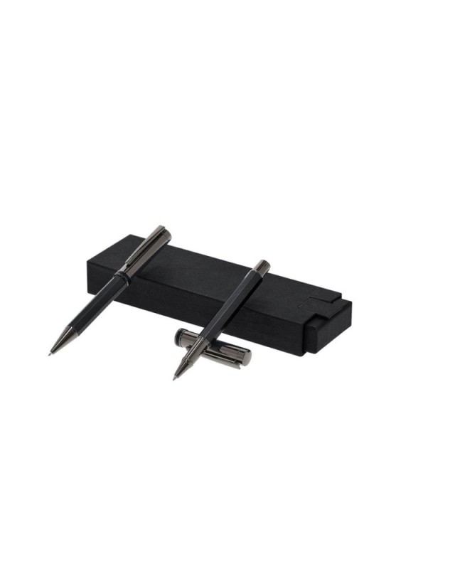 Set esclusivo di penna a sfera e penna roller di altissima qualità della collezione Limited Edition. Un accessorio moderno, funzionale e splendido che trascende tutte le aspettative. Distinto per il suo design elegante e minimalista. Realizzato in acciaio inossidabile resistente e durevole, in perfetta combinazione con lalluminio. Penna a sfera con sofisticato sistema di apertura a rotazione e penna roller con pratico cappuccio. Design a presa esagonale in colori metallici opachi e una parte superiore lucida in antracite sobria. Con clip in metallo, inchiostro blu e ricaricabile (penna roller con cartuccia jumbo).Dalla perfetta combinazione di esclusività e design, nasce Limited Edition, una collezione speciale di idee promozionali in edizione limitata. Un nuovo concetto, ispirato dalla fusione di prodotti premium con le tendenze più recenti e innovative e con una selezione limitata disponibile, trasformando un regalo in unesperienza unica e indimenticabile.Esclusivo astuccio di presentazione Limited Edition, con un design protetto da diritti di proprietà industriale.Inclusa una scheda con la descrizione della Limited Edition in cartone riciclato. - Diametro: 1.3 cm - Peso: 23 gr