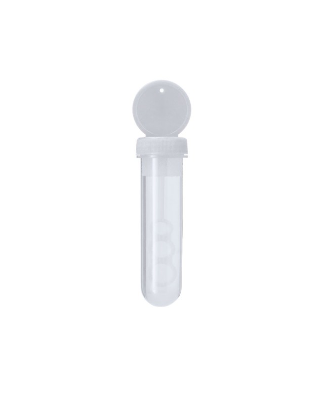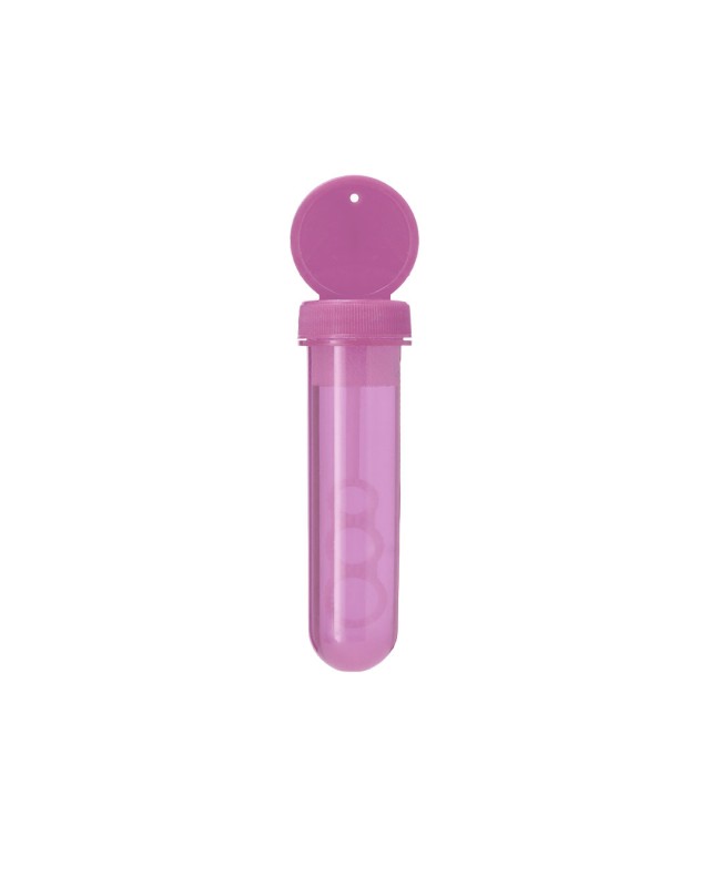 Soap bubble maker con applicatore speciale che consente di creare bolle in 3 dimensioni. Liquido incluso (30 ml). Con coperchio di colore solido e corpo traslucido. - Diametro: 3.4 cm - Peso: 42 gr