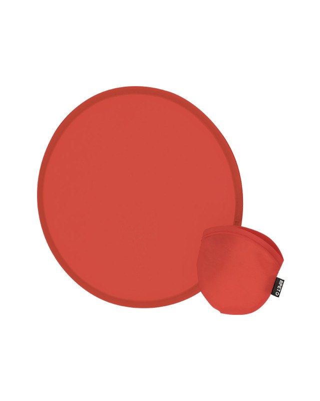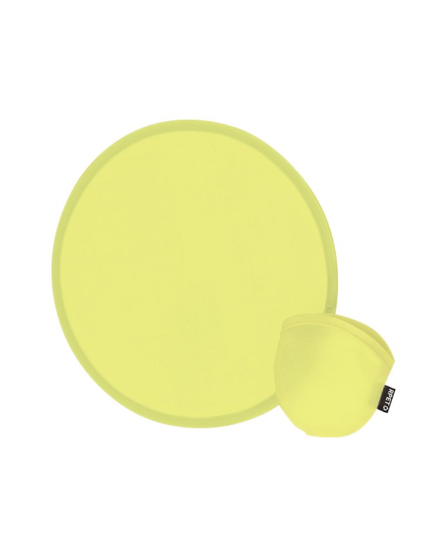 Frisbee pieghevole realizzato in RPET 190T. Con custodia individuale abbinata e semplice sistema di piegatura per dimensioni compatte.Il materiale RPET è realizzato a partire da plastica riciclata per promuovere il riutilizzo dei rifiuti plastici e aiutare la sostenibilità del pianeta. - Diametro: 24.5 cm - Peso: 10 gr