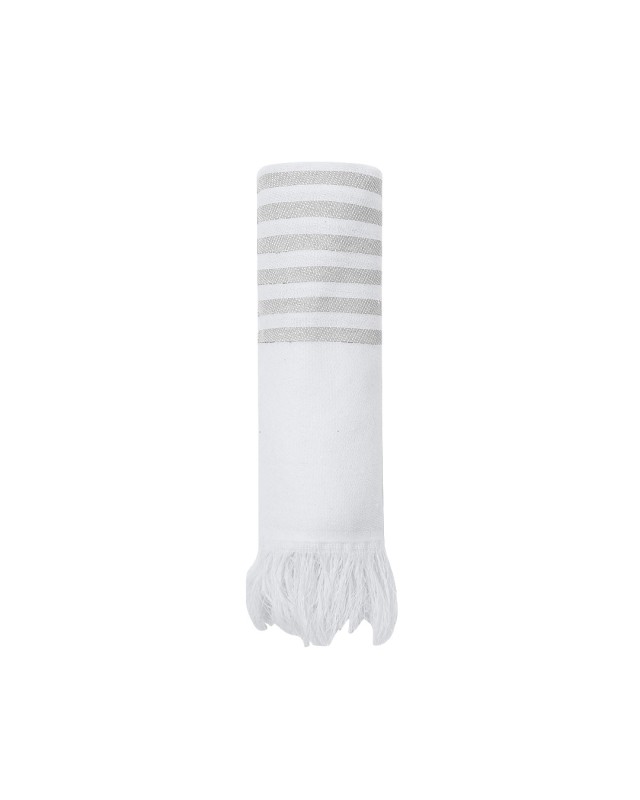 Morbido pareo-asciugamano di 300 g/m² realizzato in una combinazione di cotone riciclato e poliestere riciclato SEAQUAL.Il suo design presenta una base bianca combinata con righe colorate e decorata da distintivi frange agli estremi. Include etichetta con design SEAQUAL che certifica la sua origine sostenibile e il suo contributo alla pulizia degli oceani. SEAQUAL INITIATIVE lavora con partner e autorità per aiutare a pulire i nostri oceani. I rifiuti marini delle nostre spiagge fondali e superfici oceaniche fiumi ed estuari vengono raccolti da programmi di pulizia. Vengono quindi classificati in diversi tipi di materiali e la porzione di plastica viene pulita e trasformata in PLASTICA MARINA RICICLATA una materia prima completamente tracciabile che crea prodotti sostenibili e ispiratori. Scegliendo prodotti che contengono PLASTICA MARINA RICICLATA stai aiutando a pulire i nostri oceani.INSIEME PER UN OCEANO PULITO. - Lunghezza: 170 cm - Peso: 375 gr
