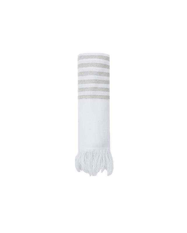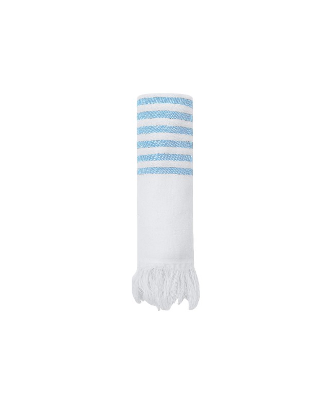 Morbido pareo-asciugamano di 3000 g/m² realizzato in una combinazione di cotone riciclato e poliestere riciclato SEAQUAL.Il suo design presenta una base bianca combinata con righe colorate e decorata da distintivi frange agli estremi. Include etichetta con design SEAQUAL che certifica la sua origine sostenibile e il suo contributo alla pulizia degli oceani. SEAQUAL INITIATIVE lavora con partner e autorità per aiutare a pulire i nostri oceani. I rifiuti marini delle nostre spiagge fondali e superfici oceaniche fiumi ed estuari vengono raccolti da programmi di pulizia. Vengono quindi classificati in diversi tipi di materiali e la porzione di plastica viene pulita e trasformata in PLASTICA MARINA RICICLATA una materia prima completamente tracciabile che crea prodotti sostenibili e ispiratori. Scegliendo prodotti che contengono PLASTICA MARINA RICICLATA stai aiutando a pulire i nostri oceani.INSIEME PER UN OCEANO PULITO. - Lunghezza: 140 cm - Peso: 245 gr