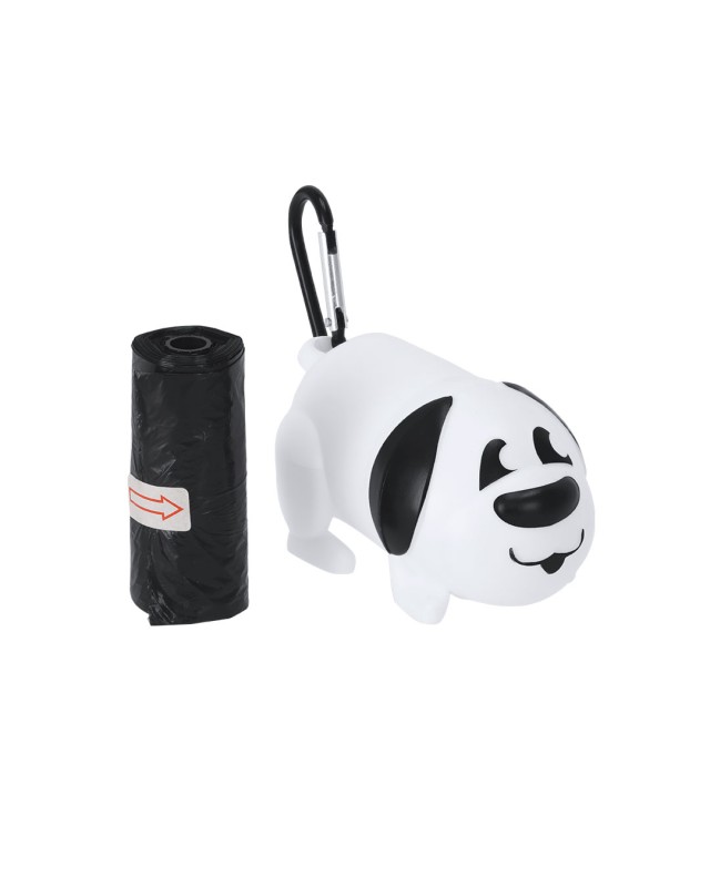 Dispenser di sacchetti per animali dall'originale design a forma di cane. Ha un moschettone per il trasporto. Include 15 borse. - Lunghezza: 9.5 cm - Larghezza: 5.3 cm - Peso: 47 gr