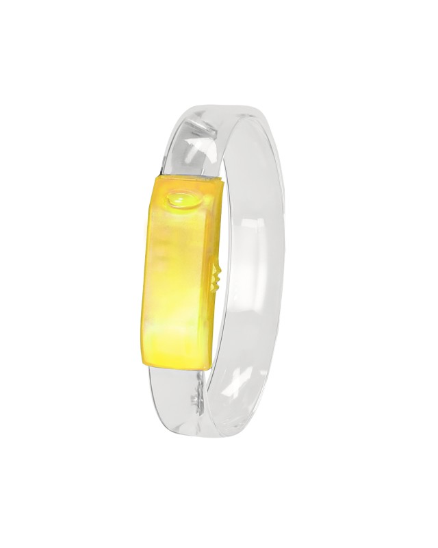Originale braccialetto con luci LED ideale per feste, eventi notturni o celebrazioni a tema. Il suo cinturino genera un effetto luminoso accattivante e originale alimentato da batterie a pulsante (incluse). Con discreto interruttore on/off di lato. - Lunghezza: 22.7 cm - Peso: 10 gr