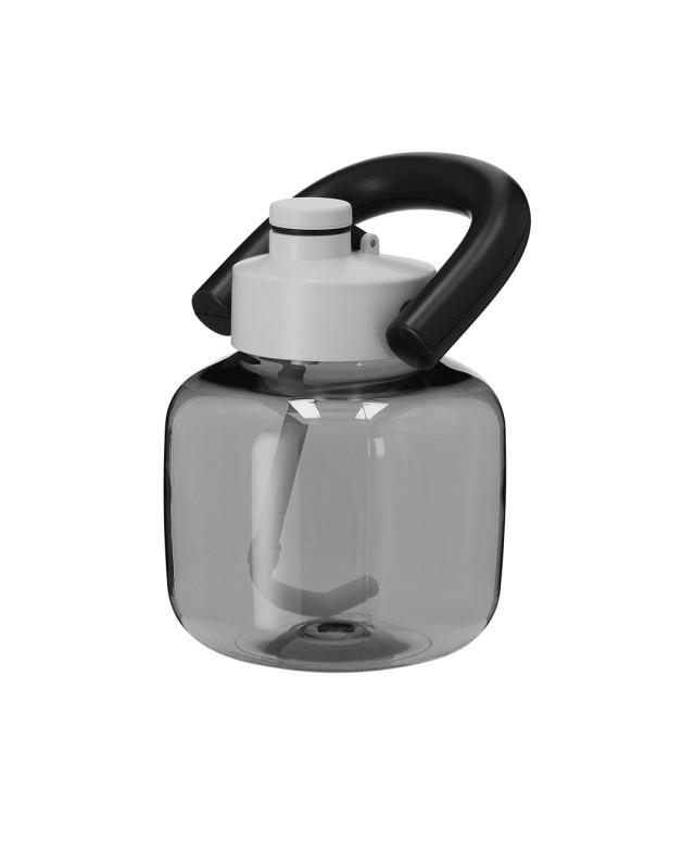 Bottiglia in resistente RPET con capacità di 1,8 L. Con originale forma di kettlebell in colore traslucido lucido. Include chiusura a vite per un'ottima tenuta, cannuccia e robusta maniglia per il trasporto. Priva di BPA. Il materiale RPET è realizzato a partire da plastica riciclata, per promuovere il riutilizzo dei rifiuti plastici e contribuire alla sostenibilità del pianeta. - Diametro: 14.5 cm - Peso: 340 gr