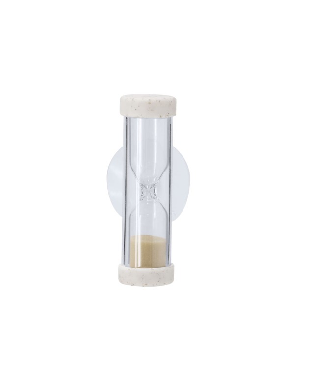 Clessidra con durata di 2 minuti, realizzata in combinazione di canna di grano e vetro. Ha una pratico ventosa che permette di fissarla facilmente.La canna di grano promuove l'uso di materie prime naturali, riducendo così le emissioni inquinanti. - Lunghezza: 1.8 cm - Larghezza: 2.5 cm - Peso: 10 gr