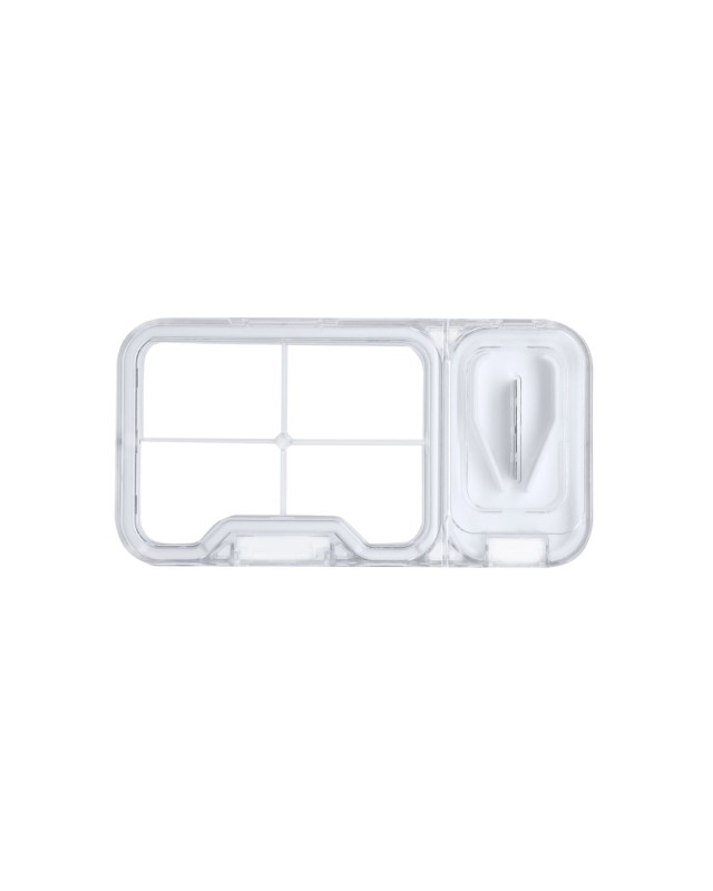 Dispenser con 4 scomparti interni, chiusura di sicurezza con bordi in silicone e lama per dividere le pillole. Realizzato con finitura trasparente. - Lunghezza: 12 cm - Larghezza: 6.5 cm - Peso: 70 gr