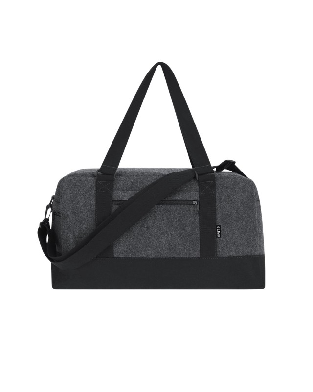 Borsa in feltro RPET. Con scomparto principale con chiusura a zip abbinata e base di colore nero e tasca esterna con zip. Include ampie maniglie di colore nero, nastro tracolla regolabile abbinato e distintivo RPET.Il feltro RPET è il risultato della combinazione del processo di riciclo di materiali plastici insieme alla tecnica millenaria di produzione del feltro, producendo un materiale eco-tendenziale che, oltre ad essere di origine riciclata, diventa anche riciclabile. - Lunghezza: 50 cm - Larghezza: 24 cm - Peso: 445 gr